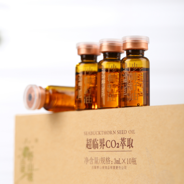 深加工精华产品线展示了企业的技术深度。采用超临界CO2萃取技术生产的沙棘籽油系列(10mL/100mL/248mL/500mL),每20000公斤鲜果只提取极少量籽油。这种物理萃取方式无化学残留,保证了油脂的高活性与纯净度。产品富含Omega-7、黄酮、维生素E等营养成分,针对心脑血管防护、健康守护力调节及年轻力管理老的尊享养生需求。